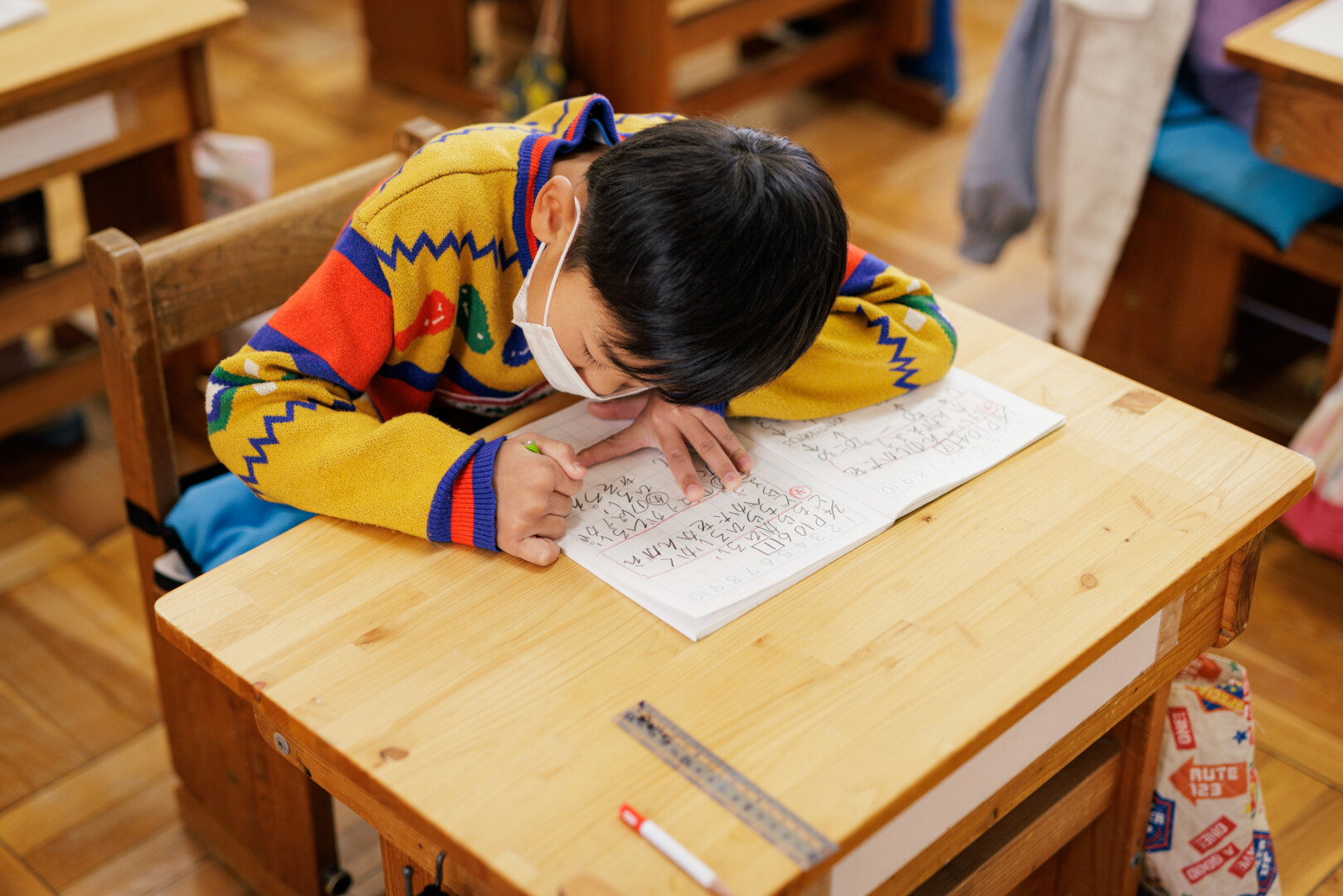 算数の授業だった。問題が解けた児童は背筋を伸ばし、クラス全員の20人が解答し終えるまで、静かに待つ。