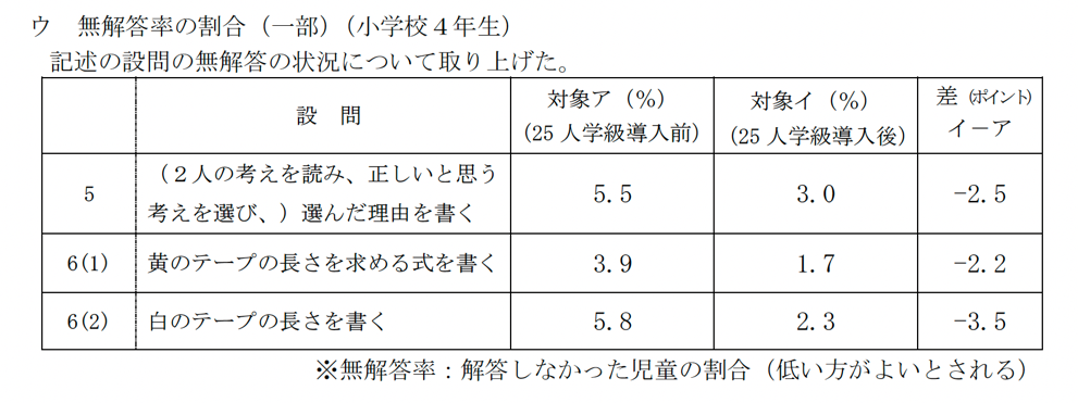 山梨県は、2020年度から2024年度にかけて、25人学級導入の効果検証を行った*。そこで注目を集めた結果の一つが、算数などの記述問題の「無解答率」だった。