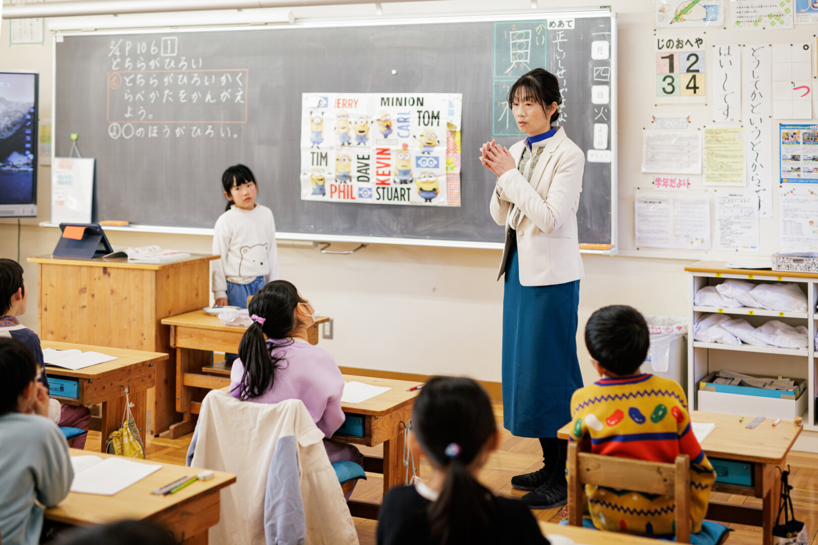 2025年3月、教師になって20年を超えるベテランとなった金丸さんは韮崎市立甘利小学校の1年1組で教鞭をとっていた。