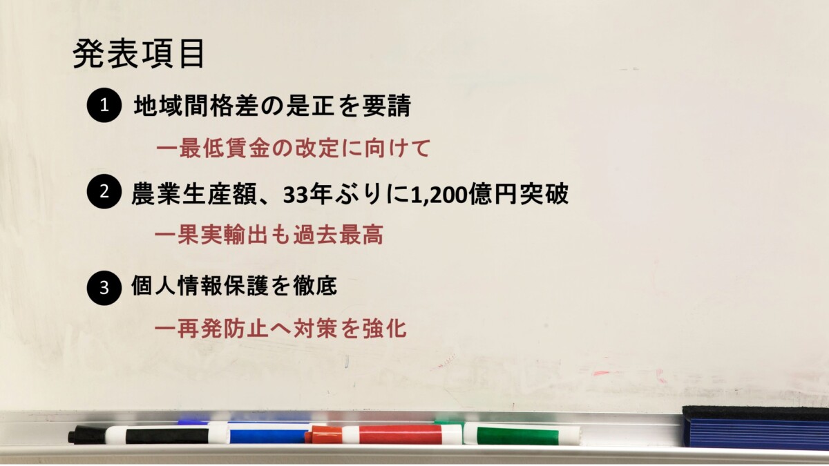 知事は、令和6年の農業生産に関する成果を公表した。