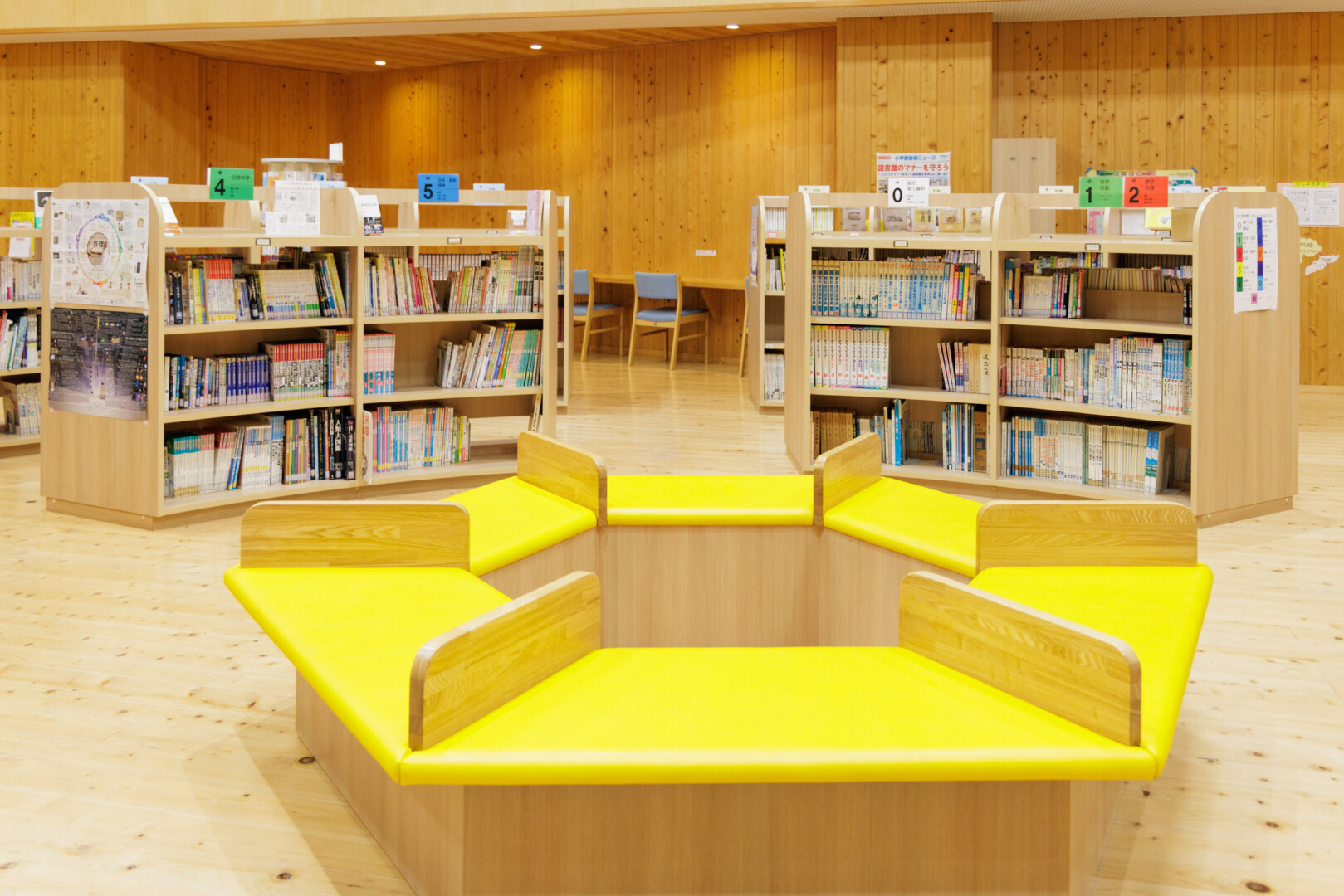 図書室も小学生と中学生が一緒に使う。小さな児童にとっては、少し背伸びした本に出会うことができる素敵なスペースになっている。学年や学校を越えてさまざまなつながりを体験してもらう工夫が凝らされている。