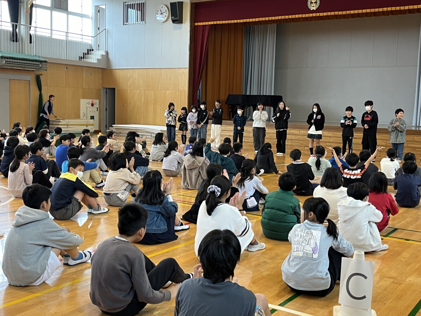 オンラインでの交流にとどまらない。昨年11月には、道志小学校の児童たちが、横浜市緑区にある市立中山小学校を訪問。おおぜいの中山小児童を前に、道志小の学校紹介をするなど、交流を深めた。