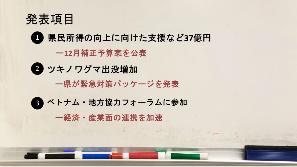 1 県民所得の向上に向けた支援など37億円/12月補正予算案を公表