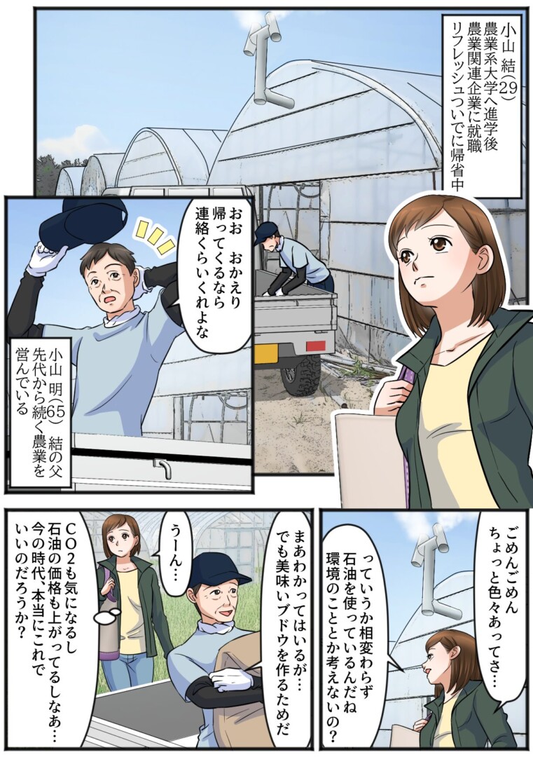 そんな疑問を持つ女性が、実家のハウス栽培をカーボンフリー農業に転換しようとがんばる、