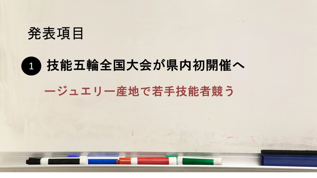 知事は4月14日の記者会見で、若手技能者の日本一を決める第64回技能五輪全国大会(貴金属装身具職種)が、本県で初めて開催されることを明らかにした。