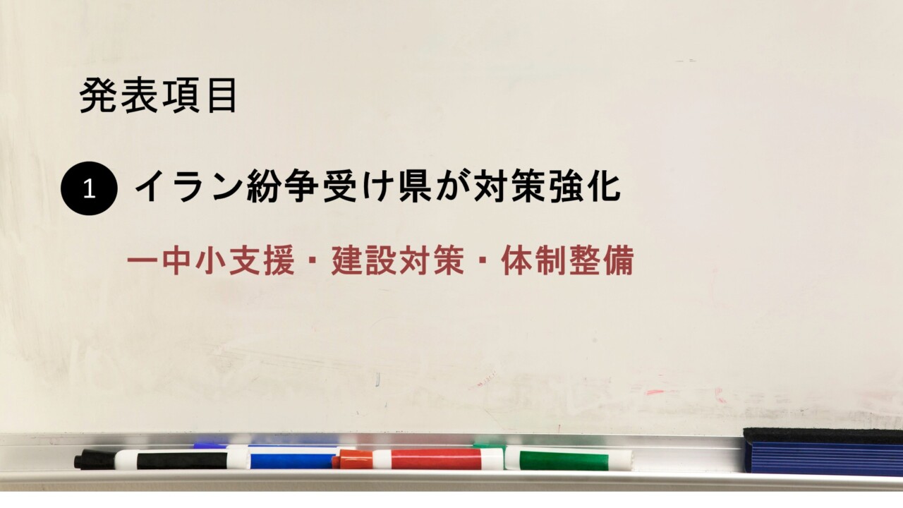 1 イラン紛争受け県が対策強化/中小支援・建設対策・体制整備